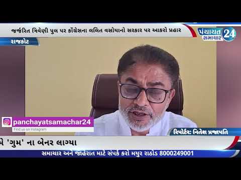 જર્જરિત ત્રિવેણી પુલ પર કોંગ્રેસના લલિત વસોયાનો સરકાર પર આકરો પ્રહાર