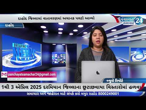 દાહોદ જિલ્લામાં વાતાવરણમાં અચાનક પલટો આવ્યો by April 2, 202500 દાહોદ જિલ્લામાં વાતાવરણમાં અચાનક પલટો આવ્યો.