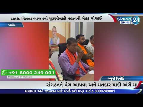દાહોદ જિલ્લા ભાજપની ચૂંટણીલક્ષી મહત્વની બેઠક યોજાઈ by February 19, 202600 દાહોદ જિલ્લા ભાજપની ચૂંટણીલક્ષી મહત્વની બેઠક યોજાઈ.