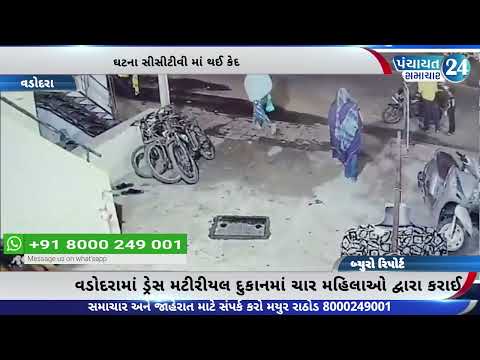વડોદરામાં ડ્રેસ મટીરીયલ દુકાનમાં ચાર મહિલાઓ દ્વારા કરાઈ ચોરી by March 1, 202500 વડોદરામાં ડ્રેસ મટીરીયલ દુકાનમાં ચાર મહિલાઓ દ્વારા કરાઈ ચોરી.