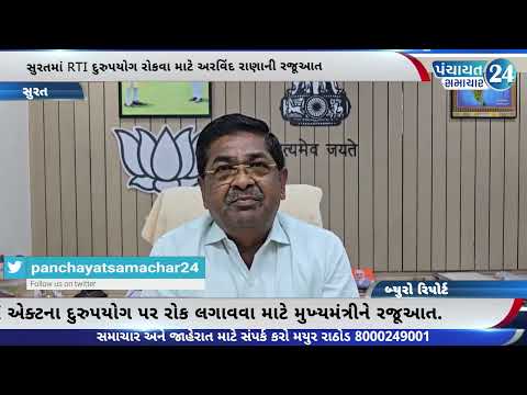 સુરતમાં RTI એક્ટના દુરુપયોગ પર રોક લગાવવા માટે મુખ્યમંત્રીને રજૂઆત by February 6, 202500 સુરતમાં RTI એક્ટના દુરુપયોગ પર રોક લગાવવા માટે મુખ્યમંત્રીને રજૂઆત.